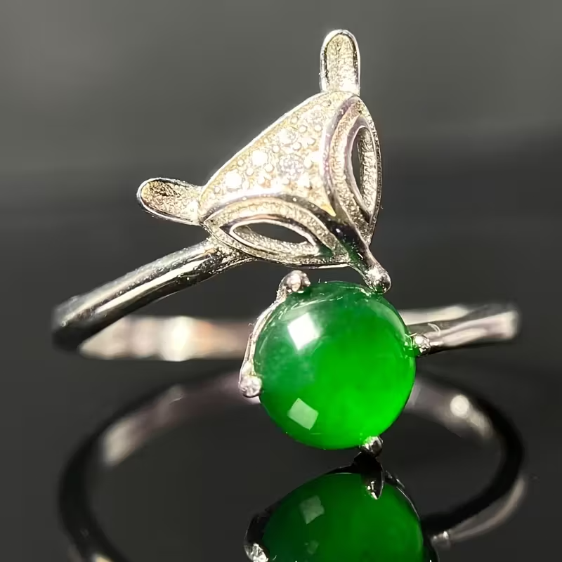 1pc 925 Sterling Silvery Fox Ring with Green Natural Stone